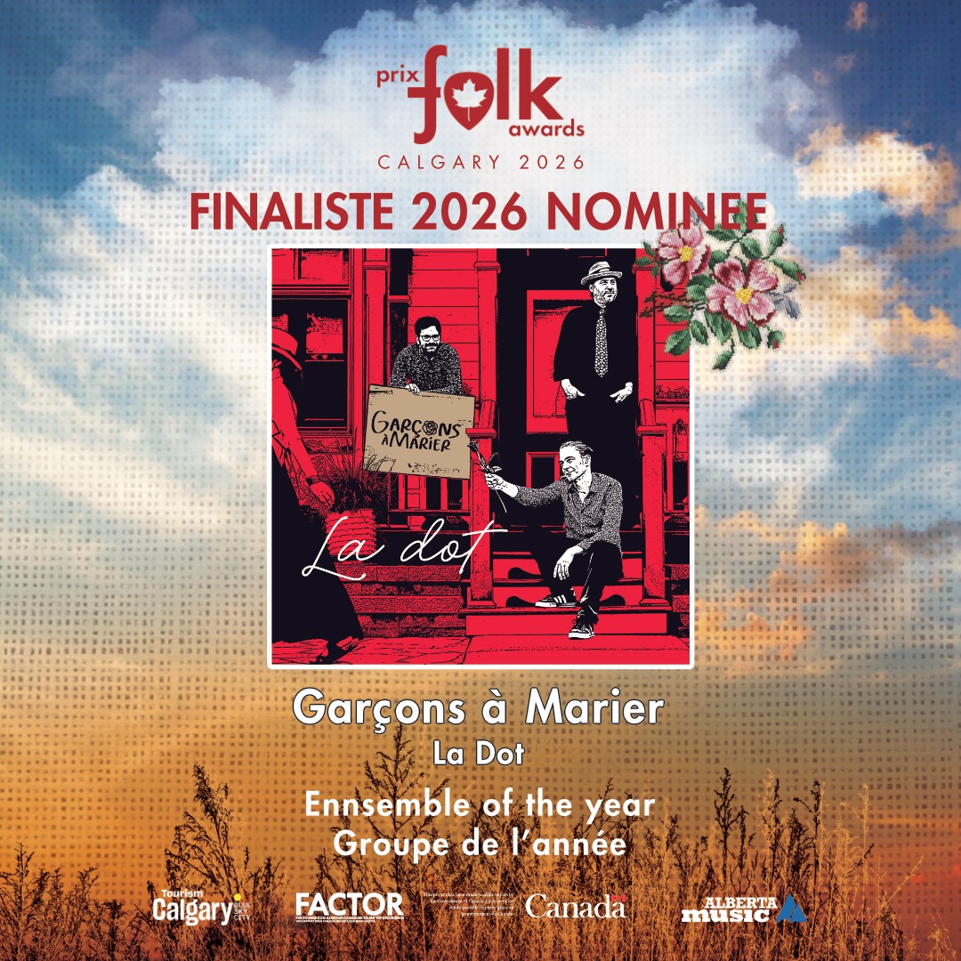 Le power trio de musique traditionnelle lanaudois Garçons à marier est finaliste dans la catégorie « Groupe de l’année » aux prestigieux Prix de musique folk canadienne / Canadian Folk Music Awards. Le gala se tiendra à Calgary en avril 2026.